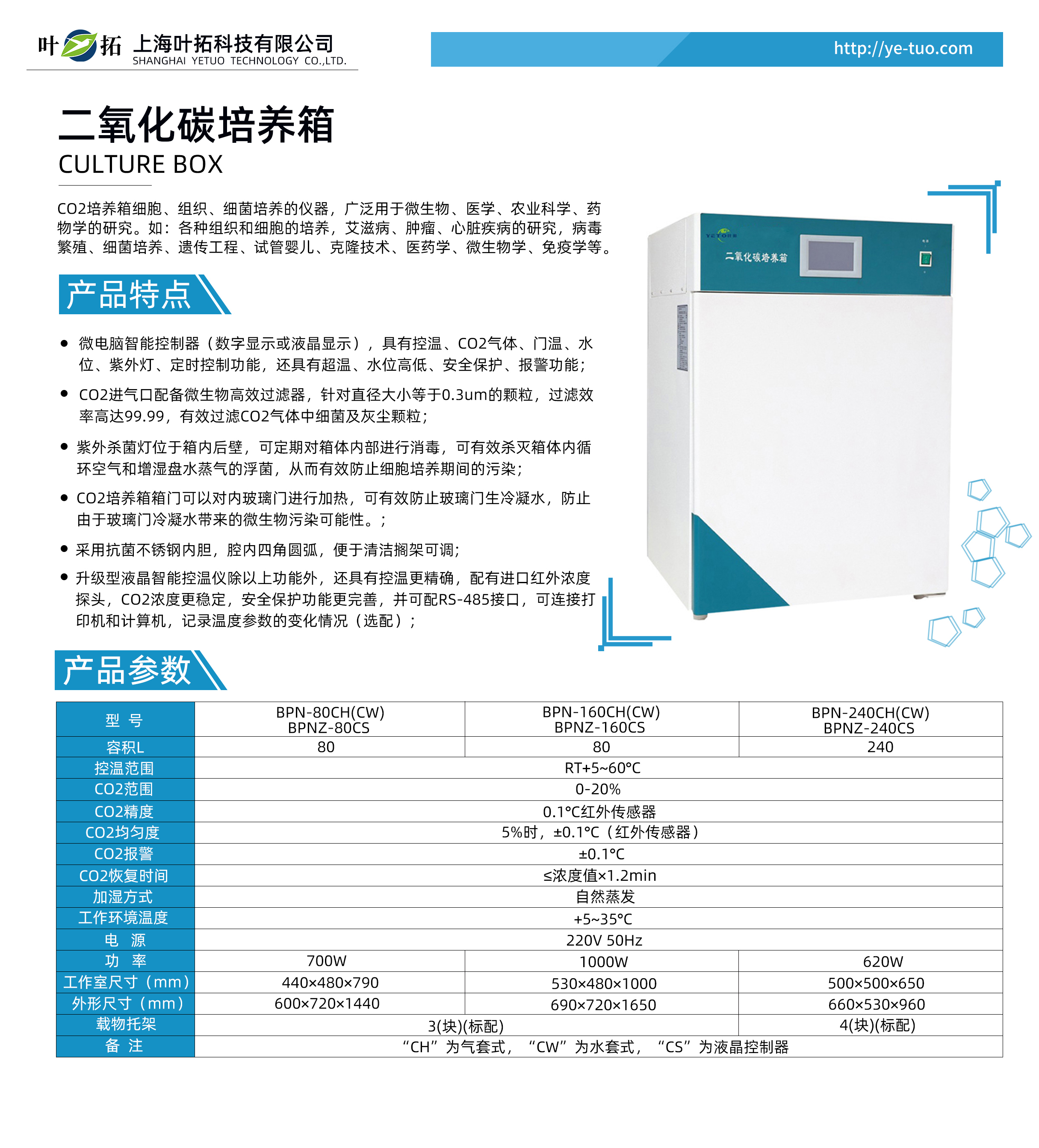 葉拓BPN-80CH二氧化碳CO2培養(yǎng)箱產(chǎn)品特點(diǎn)