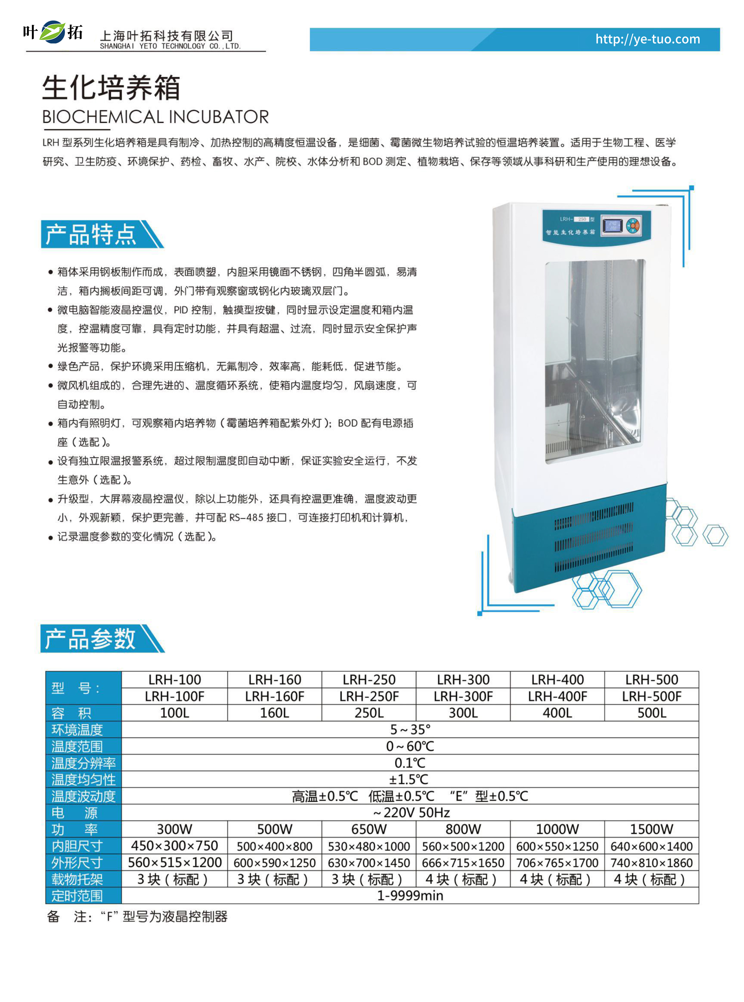 葉拓LRH系列生化培養(yǎng)箱產品特點