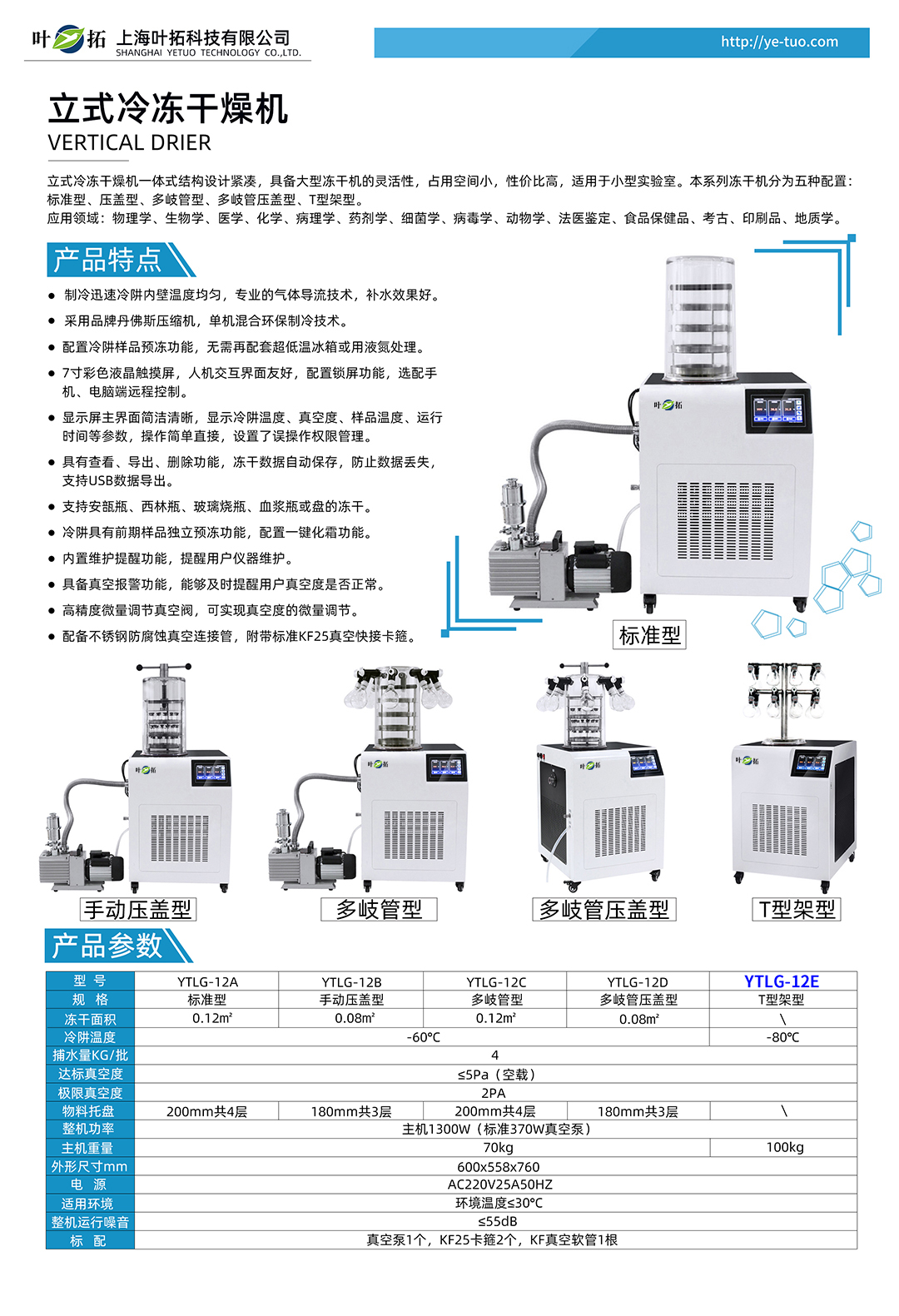 上海葉拓 YTLG-12E 立式凍干機的產品特點: