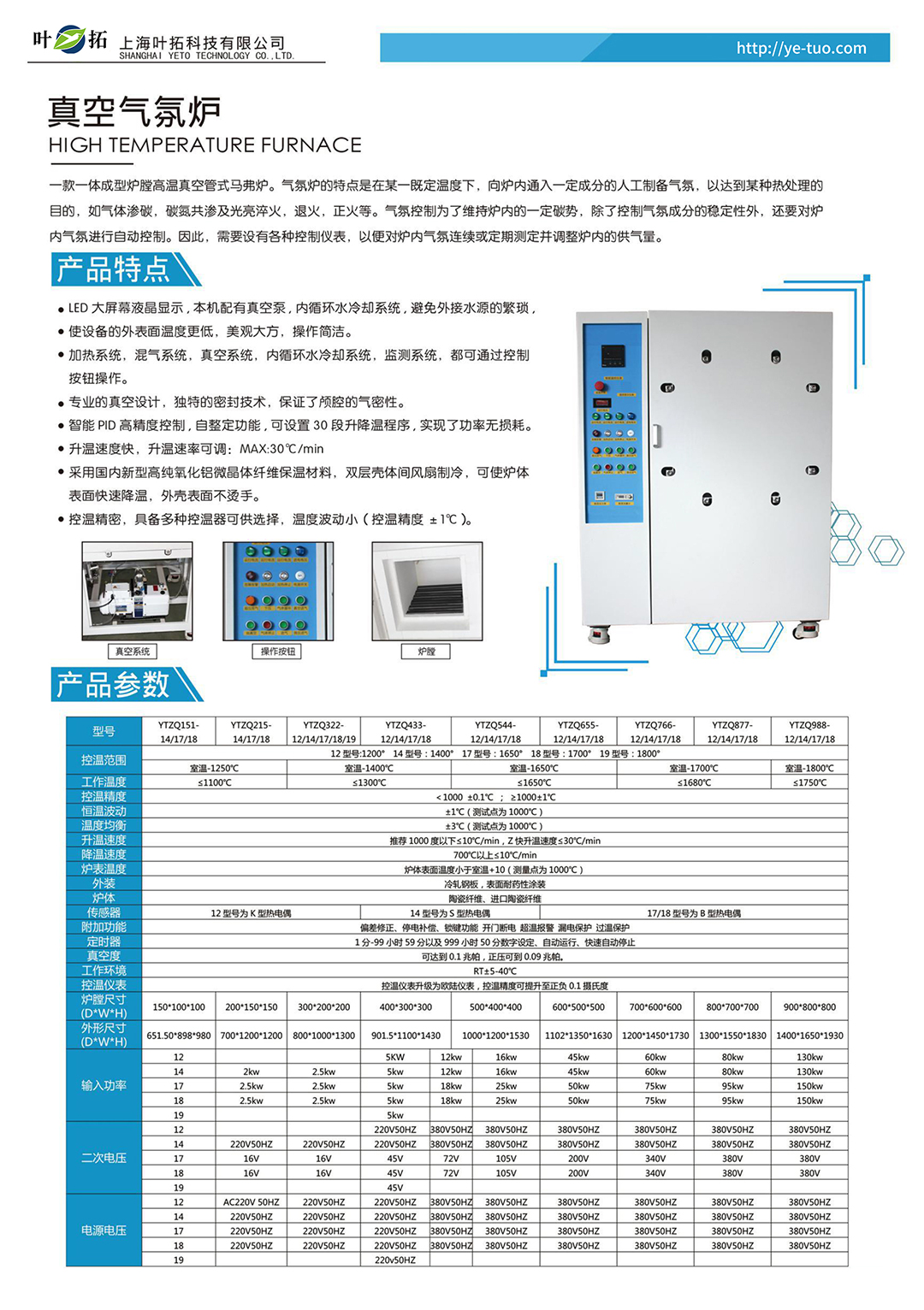 葉拓YTZQ系列真空氣氛爐產品特點